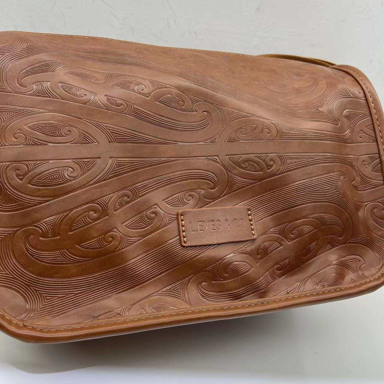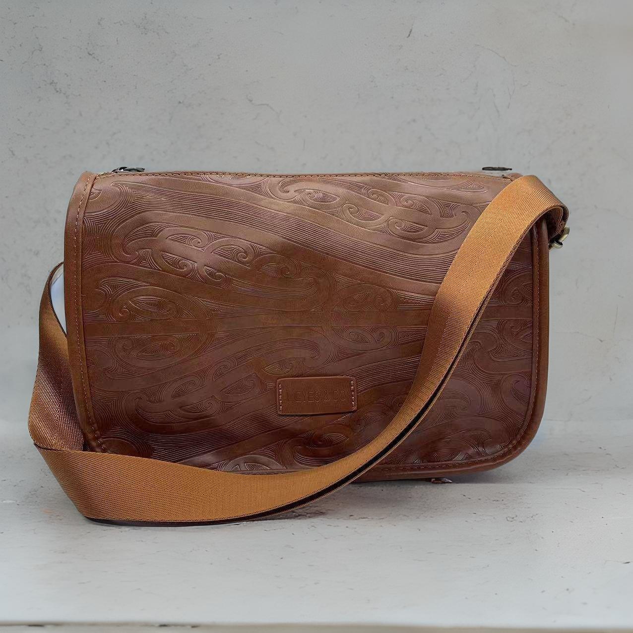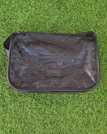 Introducing our stylish and versatile Cross Body Bag featuring an embossed Maori design into the vegan friendly PU leather. This versatile bag is perfect for both men and women and offers plenty of space for all your essentials. Inside you'll see a zip up pocket and 2 open pockets and our new clip on strap.